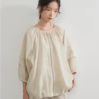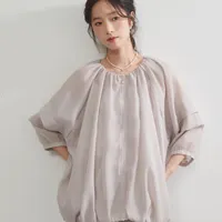 KNGJ605-シアーブルゾンジャケット・裾ギャザーZIPシアーアウター FREE/GREIGE