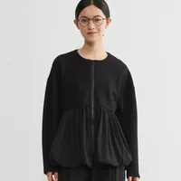 異素材切替 バルーンヘムジップブルゾン 立体スリーブ レディースアウター BLACK/FREE