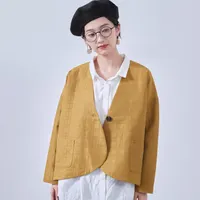 KNNJ355-ラウンドヘム・ノーカラー・キルティング風ジャケット・長袖アウター・秋・ガーリー MUSTARD/FREE