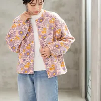 優しい着心地 ブロックプリントのキルティングジャケット ポピー LA(ラベンダー)