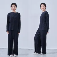 KNNP365-プリーツ加工・カットソーワイドパンツ・アップサイクル・イージーパンツ BLACK/FREE