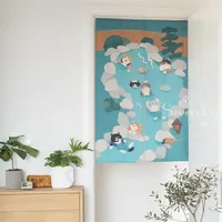 即納可能 人気!在庫僅か MEWJIオリジナル パンチフリー のれん 麻 80*120cm 3色展開 |家紋