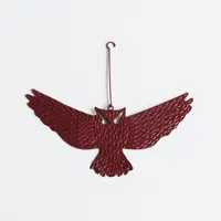 飾ったり添えたり エンボス ブリキオーナメント 羽ばたくフクロウ Sサイズ MA(マルーン)