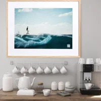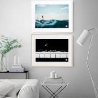 【現代アートポスター】 海面 波 一輪車 少女 写真コラージュ A3(M) フレームセット:無垢 41.0×52.5cm