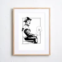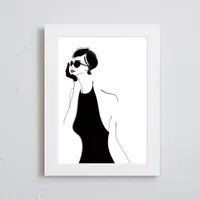 【現代アートポスター】スタイリッシュ 都会的な大人女子 サングラス モノトーンイラスト A3(M) フレームセット:無垢 41.0×52.5cm