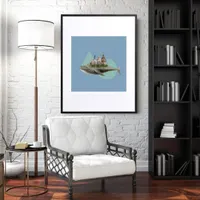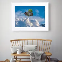 【現代アートポスター】 空想 青い空 空飛ぶ家 夢 写真コラージュ A2(L) フレームセット:白 55.1×73.3cm