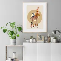 【現代アートポスター】動物 キリン ドーナッツ お菓子 おしゃれ 写真コラージュ A3(M) フレームセット:無垢 41.0×52.5cm