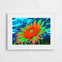 【現代アートポスター】向日葵 ひまわり purple イラスト A4(S) フレームセット:白 29.4×38.4cm
