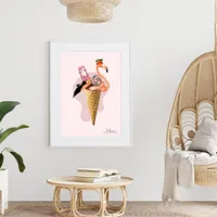 【現代アートポスター】アイスクリーム フラミンゴ アイスキャンディー 大人可愛い 写真コラージュ A3(M) フレームセット:無垢 41.0×52.5cm