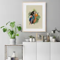 【現代アートポスター】南国 鳥 オウム 女性 おしゃれ 写真コラージュ A3(M) フレームセット:無垢 41.0×52.5cm