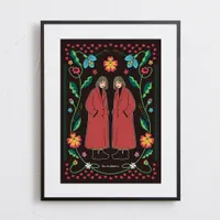 【現代アートポスター】大人女子 女友だち おしゃれイラスト A4(S) フレームセット:無垢 30.4×39.4cm
