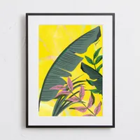 【現代アートポスター】ボタニカル 観葉植物 ペインティング イエローyellow イラスト A4(S) フレームセット:黒 29.4×38.4cm