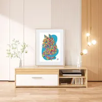 【現代アートポスター】動物 猫 cat 模様 イラスト A3(M) フレームセット:無垢 41.0×52.5cm