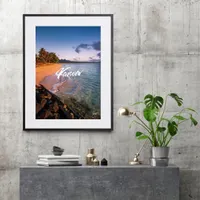 【現代アートポスター】ハワイ 風景景色 海岸 ビーチ サンセット カリグラフィー A4(S) フレームセット:白 29.4×38.4cm