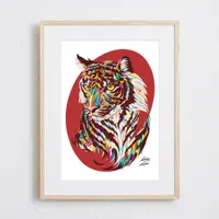【現代アートポスター】動物 虎 トラ 模様 イラスト A4(S) フレームセット:無垢 30.4×39.4cm