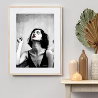 【現代アートポスター】モノトーン白黒 赤色の唇 かっこいい女性 A3(M) フレームセット:無垢 41.0×52.5cm
