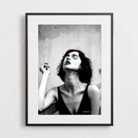 【現代アートポスター】モノトーン白黒 緑色の唇 かっこいい女性 A4(S) フレームセット:黒 29.4×38.4cm