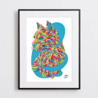 【現代アートポスター】動物 オオカミ 狼 模様 イラスト A3(M) フレームセット:無垢 41.0×52.5cm