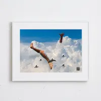 【現代アートポスター】 風景景色 空 雲 イルカ 人物 写真コラージュ A4(S) フレームセット:白 29.4×38.4cm