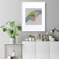 【現代アートポスター】ボタニカル 観葉植物 唇 Lip 女性 イラスト A4(S) フレームセット:白 29.4×38.4cm
