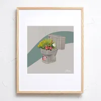 【現代アートポスター】トイレ 考える場所 花束 イラスト コラージュ A4(S) フレームセット:無垢 30.4×39.4cm
