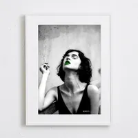 【現代アートポスター】モノトーン白黒 緑色の唇 かっこいい女性 A4(S) フレームセット:白 29.4×38.4cm
