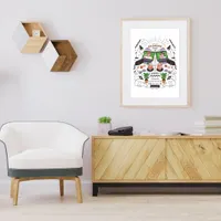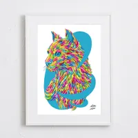 【現代アートポスター】動物 猫 cat 模様 イラスト A4(S) フレームセット:白 29.4×38.4cm