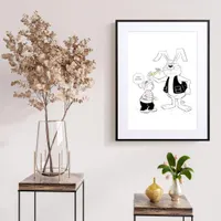 【現代アートポスター】アメリカンポップ コミカル モノトーン うさぎ 子ども ピザ イラスト A3(M) フレームセット:黒 40.0×51.5cm