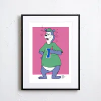 【現代アートポスター】アメリカン クマさん コミカル ポップイラスト A4(S) フレームセット:白 29.4×38.4cm