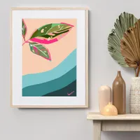 【現代アートポスター】ボタニカル 観葉植物 葉っぱ 雫 海 イラスト A4(S) 28.8×37.8cm(ポスターのみ)