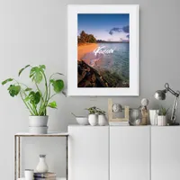 【現代アートポスター】ハワイ 風景景色 ヤシの木 夕焼け カリグラフィー A3(M) フレームセット:白 40.0×51.5cm