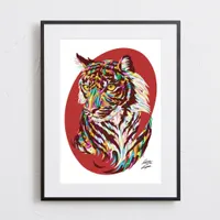【現代アートポスター】動物 虎 トラ 模様 イラスト A4(S) フレームセット:黒 29.4×38.4cm