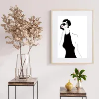 【現代アートポスター】サングラス モノトーン 都会的な女性 おしゃれイラスト A3(M) フレームセット:無垢 41.0×52.5cm