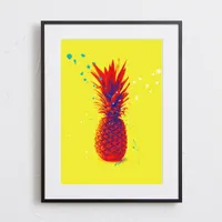 【現代アートポスター】イエローパイン yellow パイナップルイラスト A4(S) フレームセット:黒 29.4×38.4cm