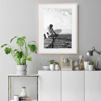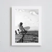 【現代アートポスター】サーフィンガール 海 波 モノトーン A4(S) 28.8×37.8cm(ポスターのみ)