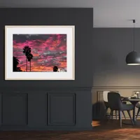 【現代アートポスター】ロサンゼルス LA 夕焼け空 ヤシの木 風景 写真 PHOTO A2(L) フレームセット:無垢 56.1×74.3cm