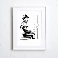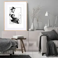 【現代アートポスター】アメリカン 人物 モノトーン ポップイラスト A2(L) フレームセット:無垢 56.1×74.3cm
