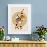 【現代アートポスター】動物 キリン ドーナッツ お菓子 おしゃれ 写真コラージュ A3(M) フレームセット:白 40.0×51.5cm