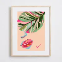 【現代アートポスター】ボタニカル 観葉植物 唇 Lip 女性 イラスト A3(M) フレームセット:白 40.0×51.5cm