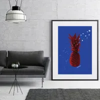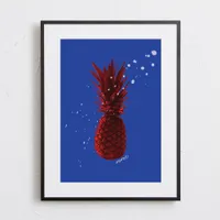 【現代アートポスター】ブルーパイン blue パイナップルイラスト A4(S) フレームセット:黒 29.4×38.4cm