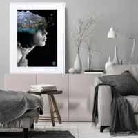 【現代アートポスター】 モノトーン 白黒 風景景色 瞳 目 写真コラージュ A2(L) フレームセット:白 55.1×73.3cm