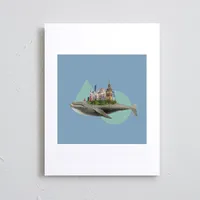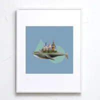 【現代アートポスター】鯨 街並み イラスト 写真 おしゃれコラージュ A4(S) 28.8×37.8cm(ポスターのみ)