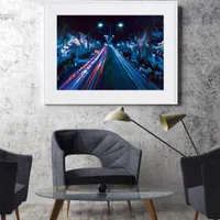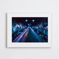 【現代アートポスター】街並み 道路 夜 湾曲 加工 おしゃれ写真. photo A4(S) フレームセット:白 29.4×38.4cm