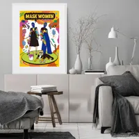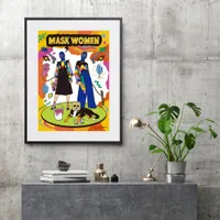 【現代アートポスター】エモい シティポップ ファッション 目出し帽 マスク 女性おしゃれイラスト A2(L) フレームセット:白 55.1×73.3cm