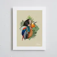 【現代アートポスター】南国 鳥 オウム 女性 おしゃれ 写真コラージュ A2(L) 54.5×72.7cm(ポスターのみ)