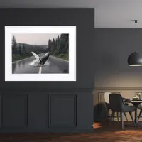 【現代アートポスター】 鯨 クジラ 海 動物 モノトーン モノクロ 道路 写真コラージュ A2(L) フレームセット:白 55.1×73.3cm