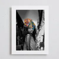 【現代アートポスター】女性 花 シンプル 写真 おしゃれコラージュ A4(S) フレームセット:黒 29.4×38.4cm