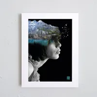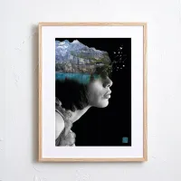 【現代アートポスター】 風景景色 女性 鳥 自然 神秘的 写真コラージュ A4(S) 28.8×37.8cm(ポスターのみ)