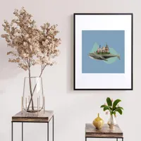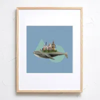 【現代アートポスター】鯨 街並み イラスト 写真 おしゃれコラージュ A3(M) フレームセット:白 40.0×51.5cm