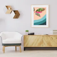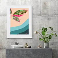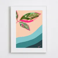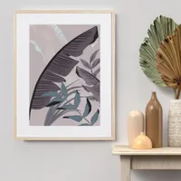 【現代アートポスター】ボタニカル 観葉植物 葉っぱ 雫 海 イラスト A2(L) フレームセット:無垢 56.1×74.3cm